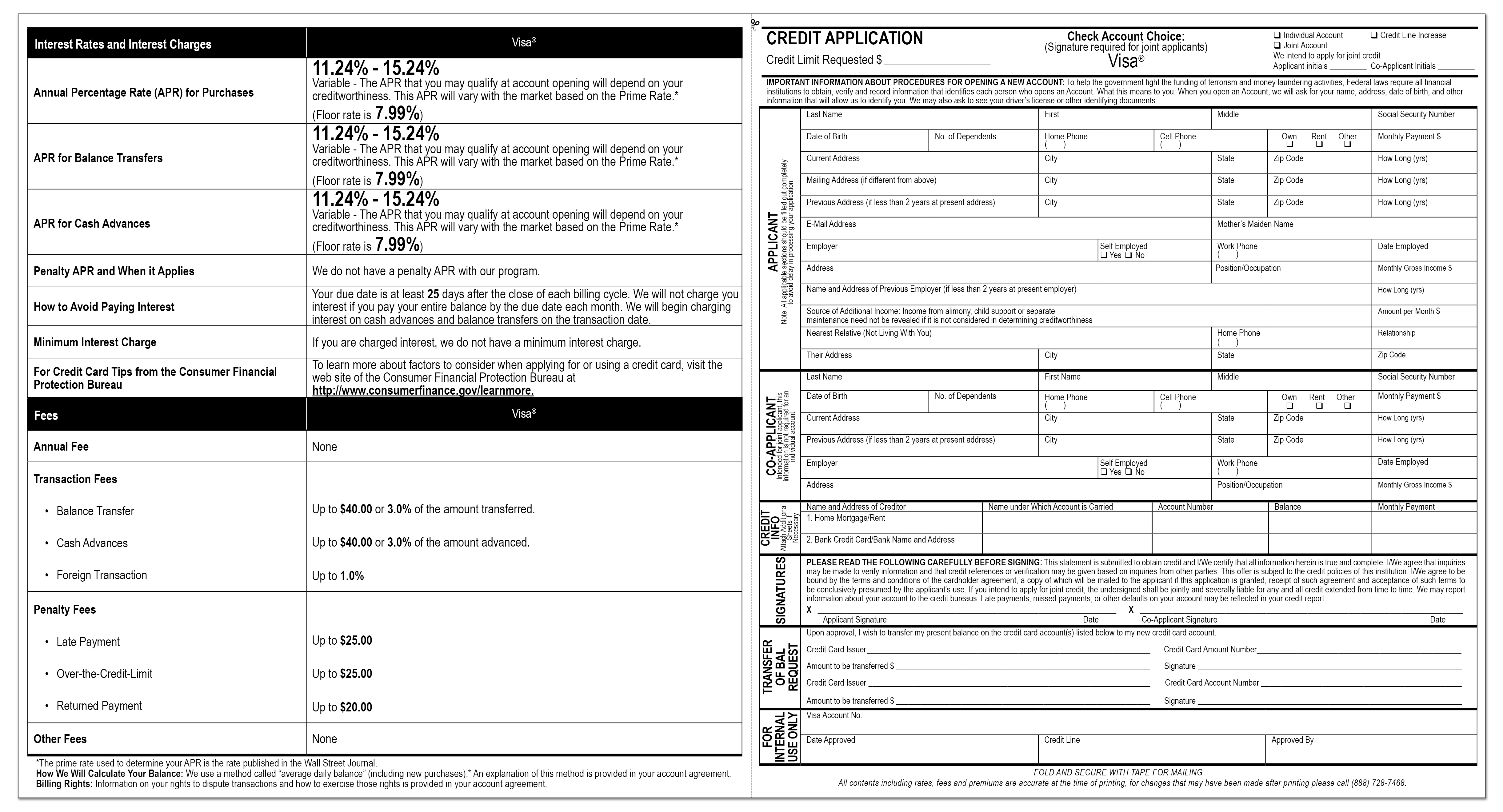Tailored to the institution's latest interest rates and terms. Produced from InDesign and carefully proofread for printing. Designed for mailing.